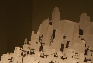From these thoughts, i began my work on a single scroll beacuse am talking about a continues evolution without boundaries than a page by page formats.......and since i am talking about landscape, the idea was to carve out a landscape from the scroll.... so the concept is from the side view, where its like a pulse recorder. as the artwork moves towards the cityscape, the pulse gets higher and higher...