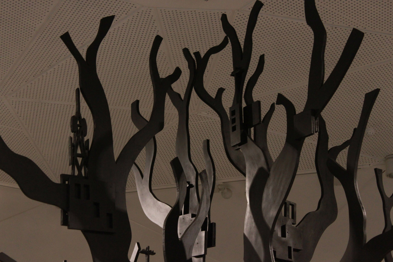 this particular one is my favorite from the show..its just a really damn heavy log of wood. might be a tree that was cut to replace it with a building. hence the tree is now having the geometric form of the building, a huge immovable block right in-front of you.